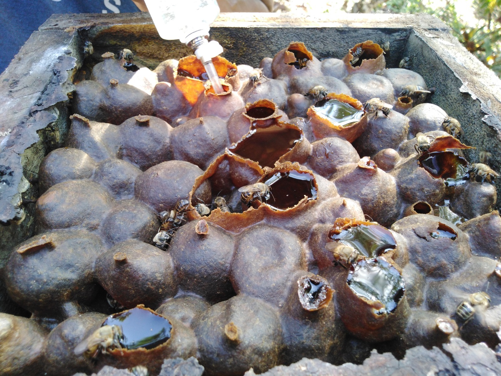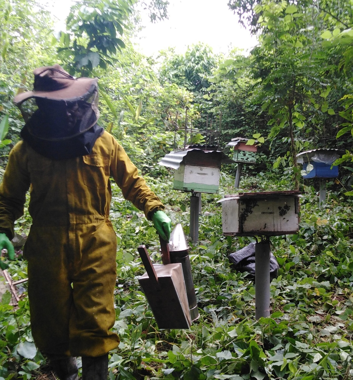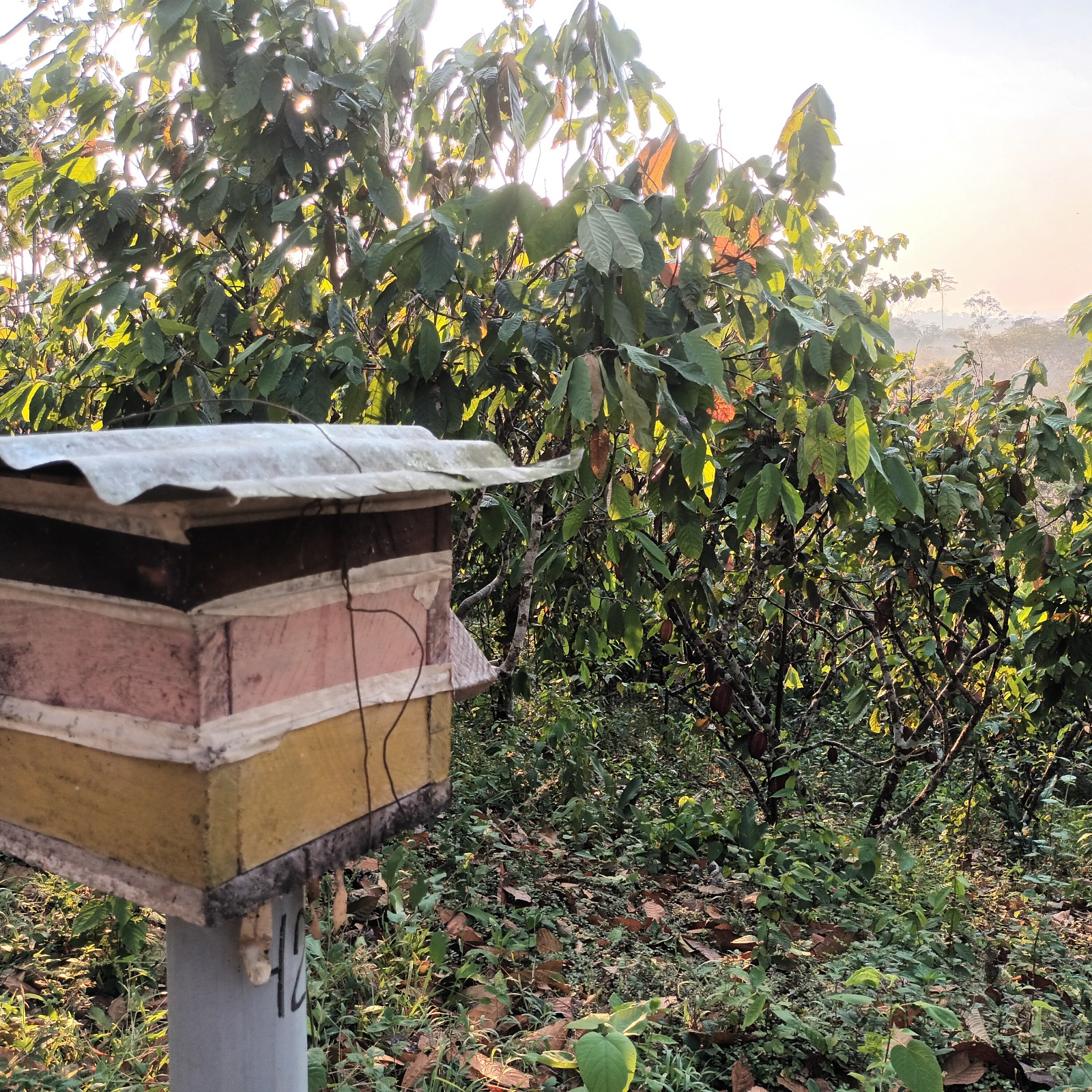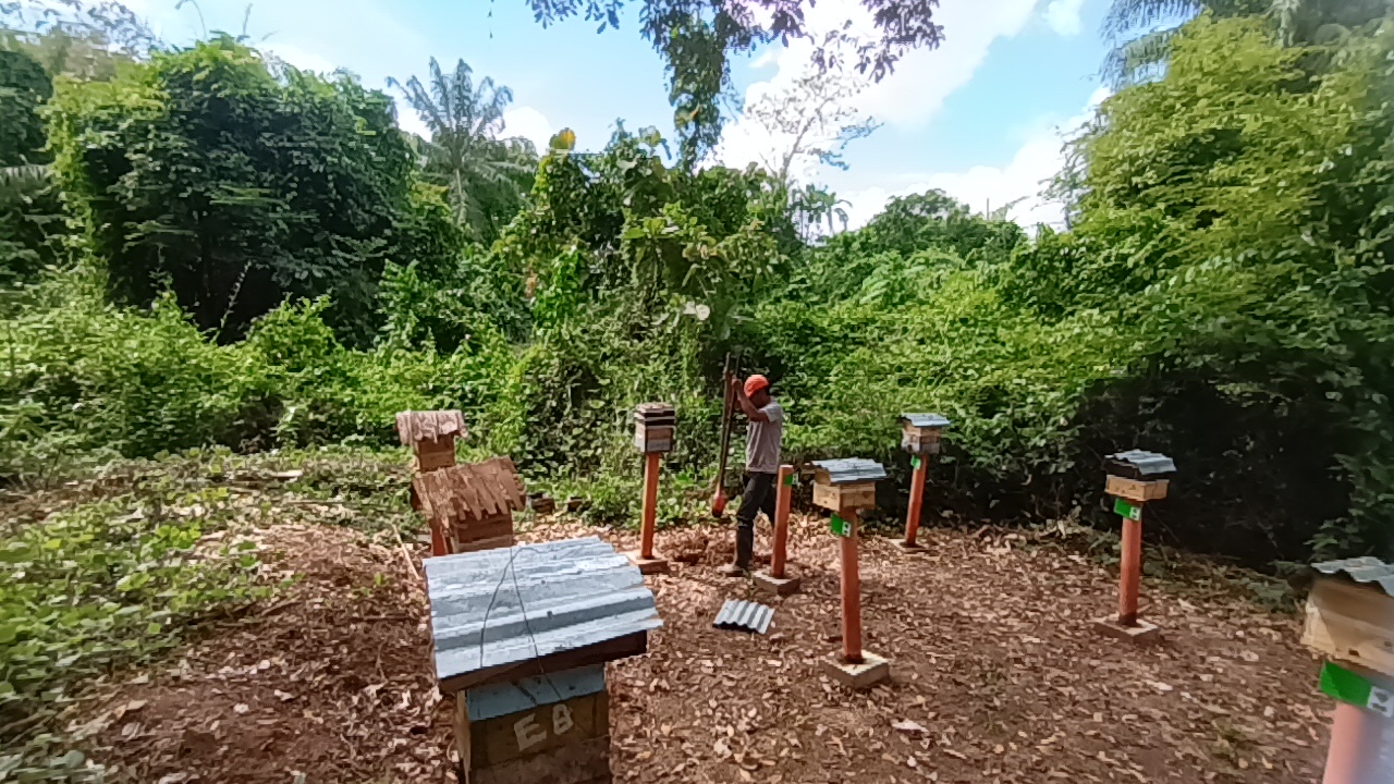 En nuestro fundo convivimos con diversas especies de abejas meliponas nativas de la Amazonía, como la Melipona eburnea, la Melipona illota y la Tetragonisca angustula, además de la abeja africana (Apis mellifera scutellata). Todas ellas cumplen un papel fundamental en la polinización de cultivos y la preservación de la biodiversidad local, fortaleciendo la sostenibilidad de nuestro ecosistema. En colaboración con el Parque Natural de Pucallpa, hemos implementado un programa de rescate, conservación y multiplicación de abejas nativas, logrando recuperar poblaciones amenazadas por la deforestación y el cambio ambiental. Este esfuerzo conjunto refleja nuestro compromiso con la protección de los ecosistemas amazónicos y la promoción de una apicultura y meliponicultura sostenibles.