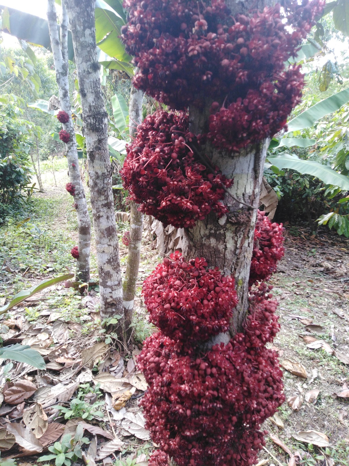 En el Fundo Cristina, las raíces que sostienen el bosque son también las que dan vida a todo lo que cultivamos. Tahuari (Tabebuia serratifolia), sangre de grado (Croton lechleri), caoba (Swietenia macrophylla), capirona (Calycophyllum spruceanum) y shihuahuaco (Dipteryx micrantha) se alzan como guardianes del ecosistema, protegiendo el suelo, purificando el aire y ofreciendo refugio a innumerables especies. Cada árbol es una memoria viva del bosque amazónico, un testimonio de su fuerza y su equilibrio natural.